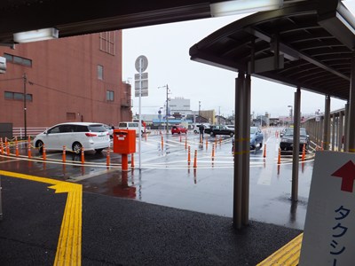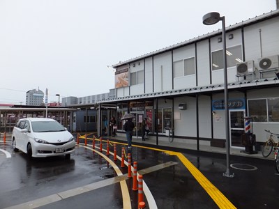 駅前はタクシープールやロータリーになっており、駅舎の隣には建て替え中に使用されていた旧駅舎が残っていました。