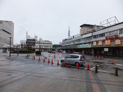北口は中心部の出入口で、繁華街になっています。北口が建て替え中なので、東口を利用します。