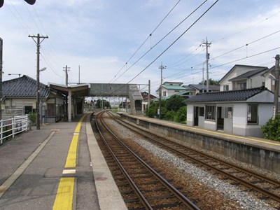 相対式2面2線の行き違い可能駅で、1線スルー構造です。下りホーム側には木造の駅舎があり、駅員さんも配置されています。