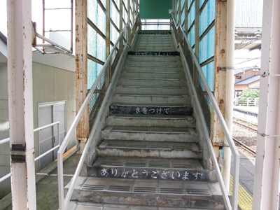 跨線橋の階段にはこんな文字が書かれていました。少しシュールです。