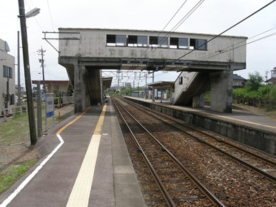 相対式2面2線で、跨線橋がホーム間を連絡しています。