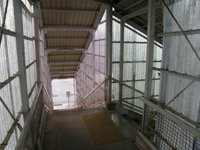 そして、その跨線橋は途中で分かれています。右側に向かうと反対側のホームに向かえますが、そのまま直進すると駅の外に直接出られます。
