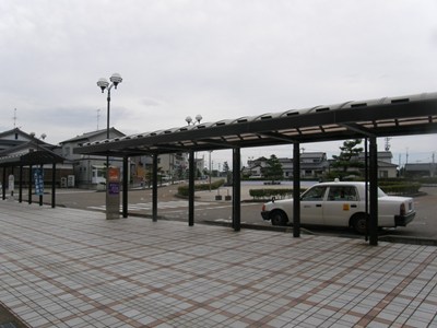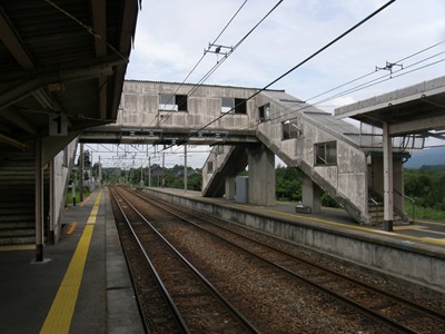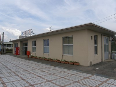 四角いコンクリート造駅舎です。宝達駅にも似たような駅舎があります。
