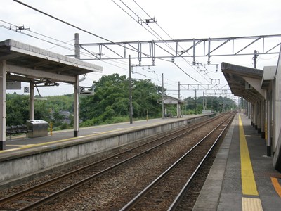 2面3線(JR型配線)の線路配置で、駅舎は下りホームに直結しています。上下両方向とも追い越し待ちをすることができ、当駅折り返しの列車も設定されています。