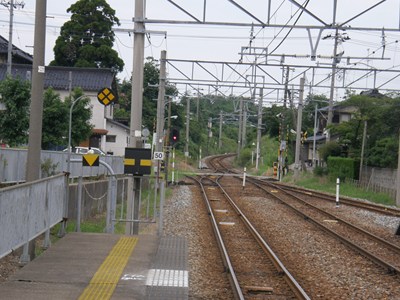 この駅の和倉温泉方の分岐は1線スルー化されておらず上下線ともに当駅通過時には速度制限を受けます。