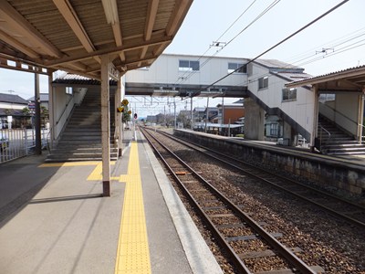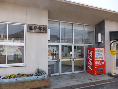 能登部駅は合併して中能登町になる前の鹿西町の中心部にある駅で、駅の周辺は商店などもある住宅地になっています。相対式2面2線の行き違い可能駅で、下りホームの側にはコンクリートの駅舎があります。