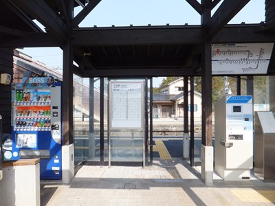 改札の部分には切符回収箱と券売機が置かれているだけで、初めから無人化を前提としています。