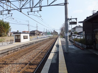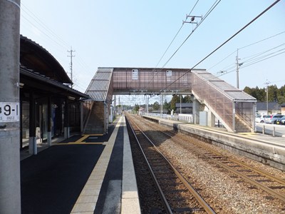 相対式2面2線の線路配置で、両ホーム間には跨線橋が架かっています。
