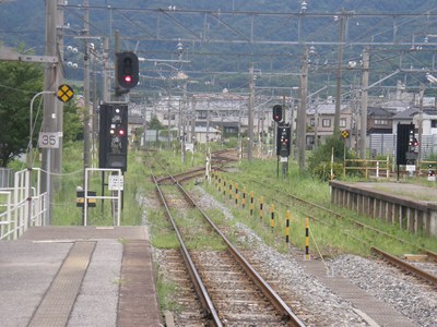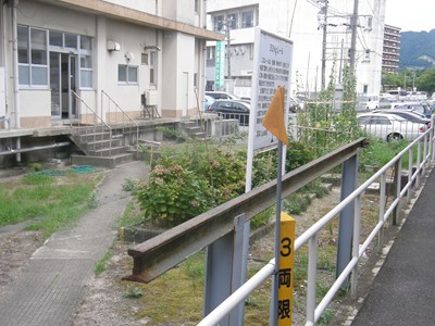 1番ホームの脇には古い33kgレールが置かれています。日露戦争の見返りに送られたロシアからの舶来品だそうで、全国的にも貴重なもののようです。