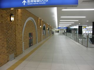 自由通路 自由通路は煉瓦張りで、駅のコンセプトである「懐かしさと新しさの融合」を表現しています。ただ、この駅は他の部分の壁全体が白いので、何となくその部分に安っぽさが漂ってしまっている気もします。