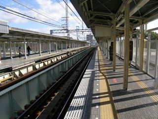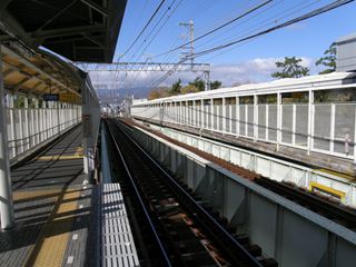 ホームは完全に鉄橋の上にあります。南側には併設して歩道も付けられています。