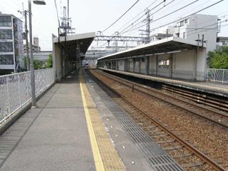梅田方より 相対式2面2線の駅で、駅の元町方で高速道路の下をくぐります。