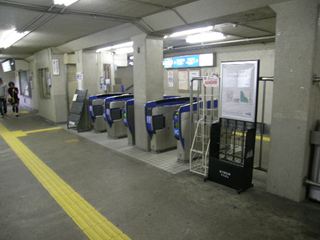 両隣を高架駅に挟まれる駅ですが、上を高速道路が横切っているため高架化できず、この駅の付近では道路を地下化して立体化しています。駅自体もその高速道路の付属物のような雰囲気で、地下にある改札からの出入口は南北ともに高速道路の高架下にあります。