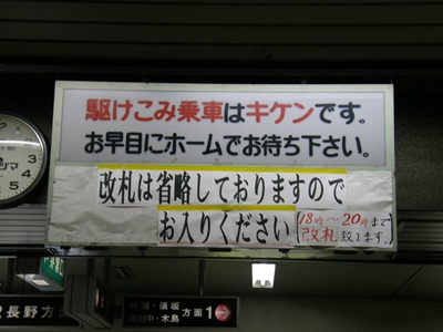 改札口の様子です。有人改札ですが、入鋏(入場するときの切符拝見)は省略されています。