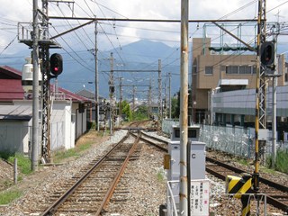 [ 朝陽駅 あさひえき ] 長野県長野市 長野駅から続いてきた地方私鉄では珍しい複線区間は、この朝陽駅で終了します。 日本家屋風の木造駅舎がある駅で、ホームは島式1面2線です。基本的に上下列車の発着ホームは固定されていますが、駅の長野方には両方向に渡り線があり、折り返しや反対方面の線路を用いた追い越しも可能な線路配置になっています。 |