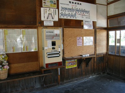 [ 村山駅 むらやまえき ] 長野県須坂市 この駅は長野駅側から見て初めての無人駅で、それと同時に初めての須坂市内の駅です。 島式ホーム1面2線の線路配置で、1線の側線もあります。木造の駅舎があり、もともとは有人駅でしたが、現在は無人駅化されています。また、この駅と柳原駅にある鉄橋「村山橋」は最近架け替えられました。 |
