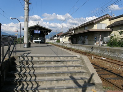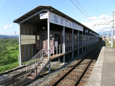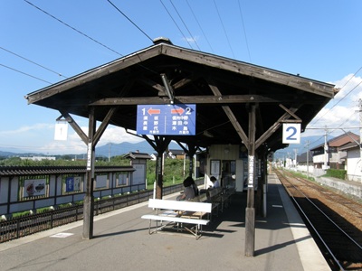 [ 小布施駅 おぶせえき ] 長野県上高井郡小布施町 小布施駅は観光地や栗菓子の生産地として有名な小布施町の玄関口で、A特急も停車する有人駅です。 島式・単式混合2面3線(JR型配線)の線路配置で、側線も含めると4本の線路がある規模の大きな駅です。そのうち普段は島式ホームのみが使われていて、駅舎のある単式ホームは利用客の通路として使われ、側線には「ながでん電車の広場」として長野電鉄にゆかりのある車両数量が保存・公開されています。 |