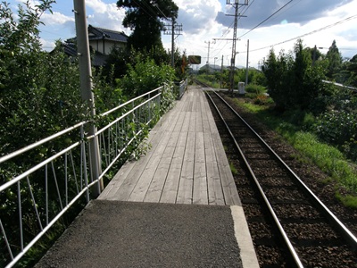 [ 都住駅 つすみえき ] 長野県上高井郡小布施町 都住駅の辺りになると長野電鉄は本格的にローカル色を帯びてきます。 単式ホーム1面1線の無人駅で、駅の入り口には駅舎の代わりに夜間瀬駅などでも見られるタイプの待合室があります。駅周辺の建物の密度は低く、利用客もあまりいなさそうです。 |