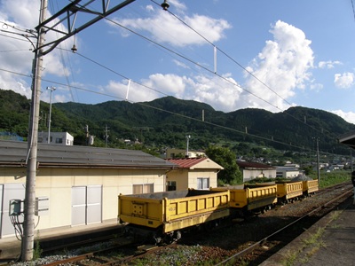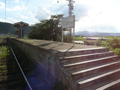 [ 桜沢駅 さくらさわえき ] 長野県中野市 桜沢駅は山の縁に位置している駅で、駅の入り口が山の側にあるため駅前には何もありません。 附属中学前駅にも似ている横長の大きな駅舎がある駅ですが、無人化されています。島式1面2線の行き違い可能駅で、保線用の貨車が留置されている側線があります。 |
