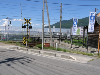 通常駅に出入りする人は、駅の長野方にある階段を使用します。この階段は上下ホームそれぞれ別に設けられ、一般道の踏切を通らないと2つのホームは行き来できません。