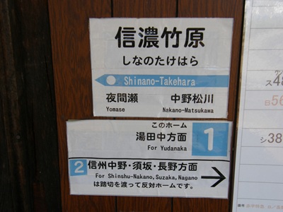 この駅の下りホームには通常の駅名標がなく、JR東日本風のデザインの駅名標が書かれた紙が貼られていました(上りホームには通常のデザインの駅名標がありました)。