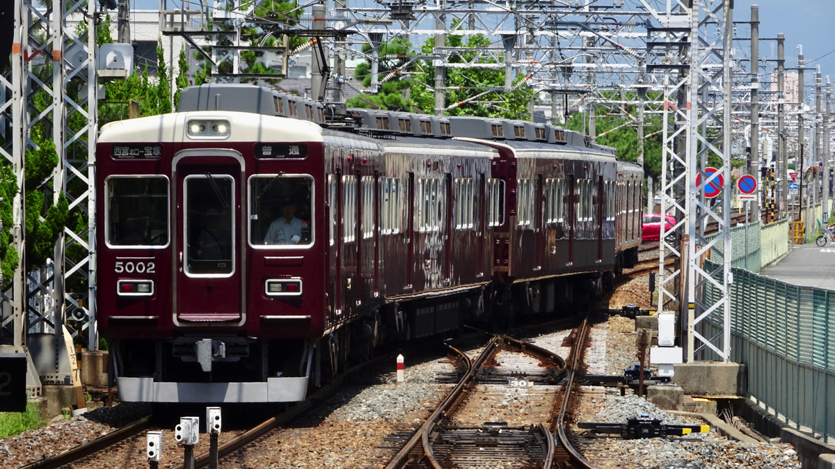 | 6000系 | 5100系をもとに設計された神宝線用の通勤電車で、宝塚本線と宝塚線・神戸線の支線で使用されている。6両編成1本が今津北線で使用されるほか、ワンマン対応の3両編成が今津南線で使用されている。 |