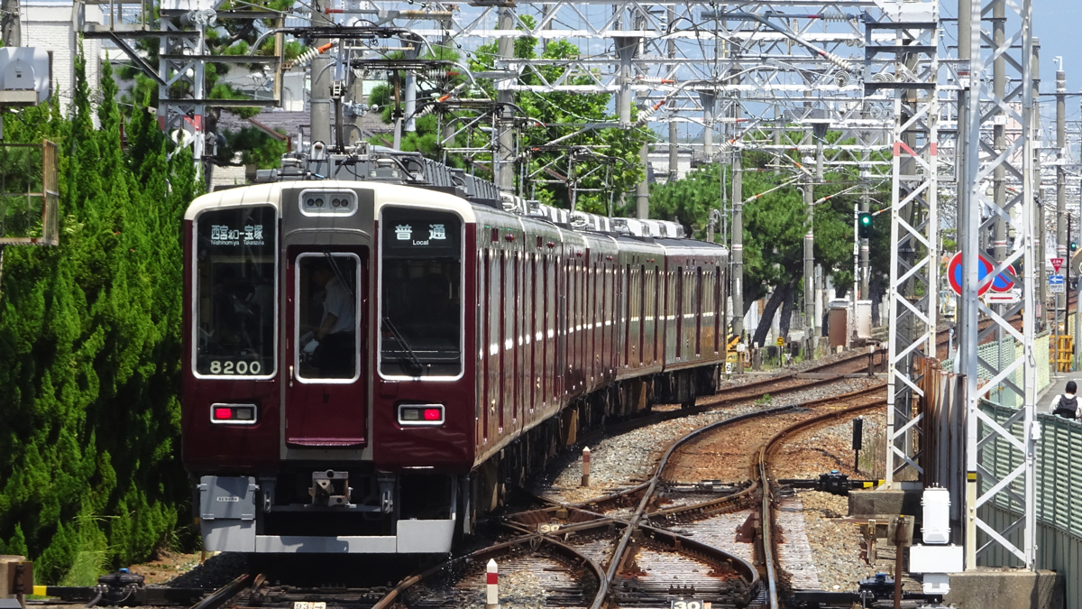 今津南線は、神戸本線・今津北線沿線と阪神本線をつなぐローカル線で、3両の電車が往復する。今津北線は沿線輸送のほか宝塚と十三・梅田を結ぶ近道(多くの時間帯で宝塚本線より所要時間が短い)となっており、平日朝と一部の土日には梅田行の上り直通列車が運転される。