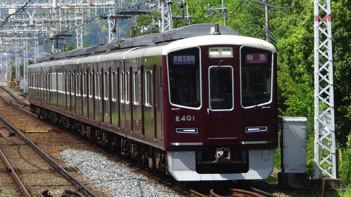 | 9300系 | 阪急の標準車両として導入された車両で、特急車両として導入された。同時期に導入された神宝線用の通勤型車両9000系と共通設計で、屋根にエアコンキセを隠すためのカバーが取り付けられているのが特徴的。2300系により置き換えられて、順次ロングシート化が進められる予定。2025年現在は過渡的に2300系のPRiVACEを組み込んだ編成がある。 |