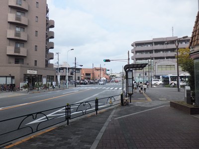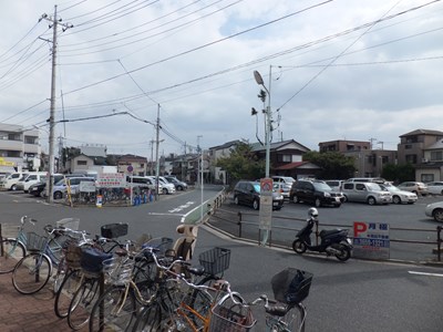 北口の反対側にも出入口があるが、こちらの駅前は民間の月極め駐車場を挟んで住宅地が広がっているだけである。