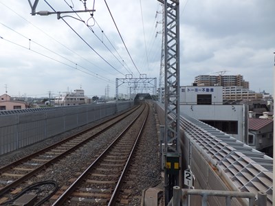 駅の高砂方には高架橋が網状の金属板で覆われている区間がある。詳細は調べてみないとわからないが、おそらく騒音か周辺住宅のプライバシーへの配慮だと思