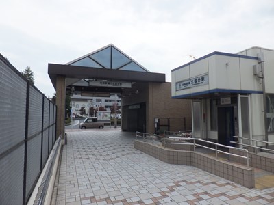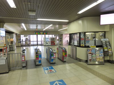 駅舎は橋上駅舎になっているが、深い掘割駅のため改札は出入口よりも下にある。駅の南側にはロータリーがある。