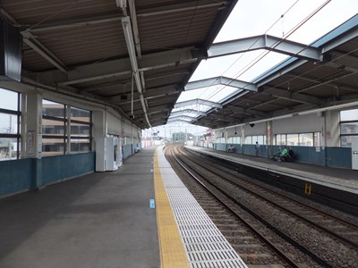 相対式2面2線の線路配置で、ホームは緩いカーブ上にある。