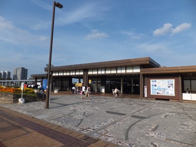 駅舎は他駅に比べて立派で、コンビニも入居している。改札内は窓が多く開放的な雰囲気である。