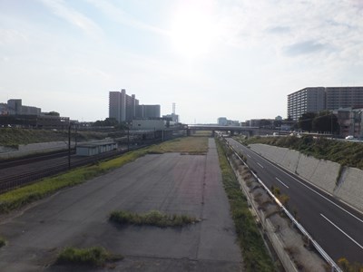 駅の北側には新幹線駅を作るために確保された用地が広がっている。