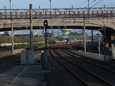 印旛日本医大方面で大きく線路はカーブしている。