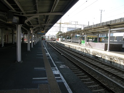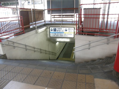 ホームは上りホームがかなり広く、ホームの間は地下道で連絡しています。