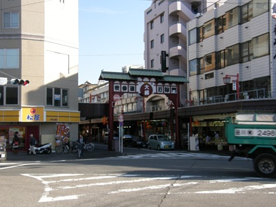 駅からは少し離れたところにあります。商店街を潤すためか、駅からの道のりは少し遠回りをするようになっています。
