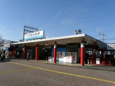 川崎大師駅は京急大師線の駅で、その名の通り金剛山平間寺(通称:川崎大師)の最寄り駅です。当初の大師電気軌道の終点で、京急で最も古い駅のひとつであるとともに、関東で最も古い電車駅のひとつでもあります。