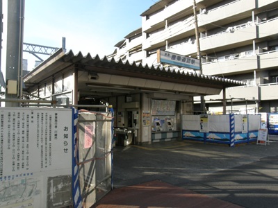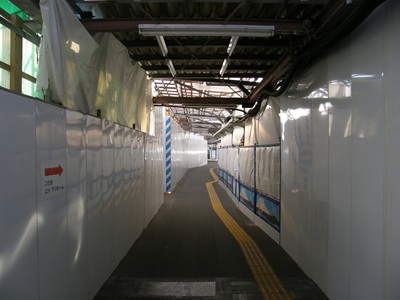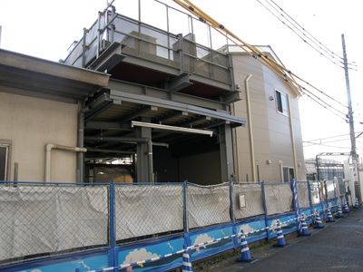 駅舎はまだ大師線でよくみられるデザインのものが使われていましたが、もうすでに工事の囲いに囲まれていました。