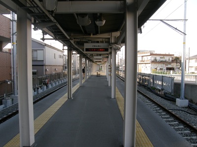 もともとはこの駅の先に線路が伸びていましたが1964年に終点駅となりそれ以降はずっと単式ホーム1面1線でした。しかし近頃、産業道路駅での地下化工事に関連してか1面2線化されました。現在駅舎の改築などの工事が行われています(すでに仮駅舎に移行しました-更新時追記)。