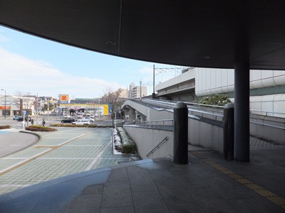 北口側にはロータリーがあります。駅の出入口は地面よりも少し高いところにあり、跨線橋を通って駅前の道路の反対側にも迎えるようになっています。