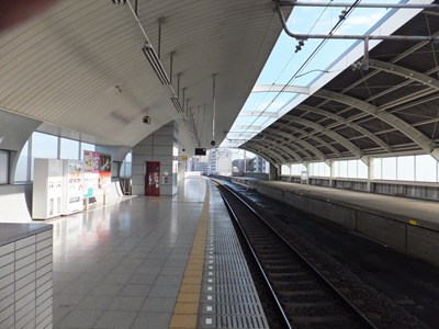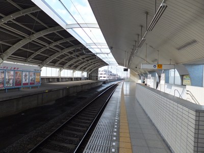 高架区間にある駅で、相対式1面1線の線路配置です。千原線には複線化計画があったため、ホームの反対側には使用されていないホームと路盤があります。駅前にはロータリーが整備されています。