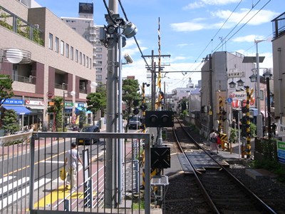 金町線が人社軌道から発展した歴史を物語るように、当駅と柴又駅の間、金町線は柴又街道と並行します。