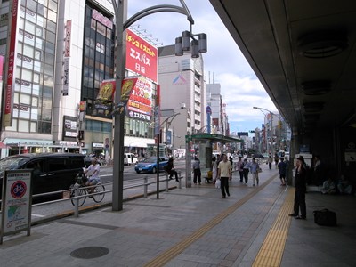 駅前は中央通りで、北側にはJR線が見えます。向かい側のヨドバシカメラはもともと京成の本社でした。