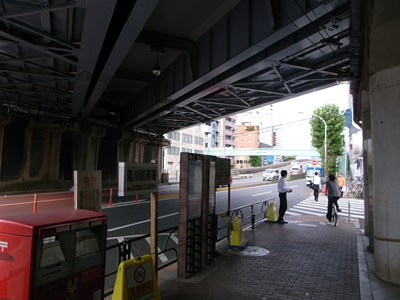駅舎は高架下にあり、明治通りに面しています。