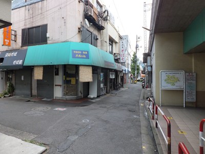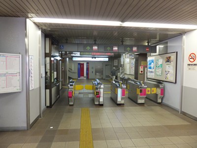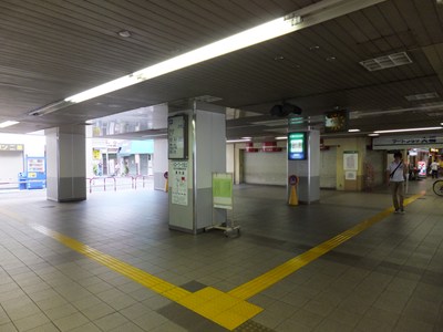 コンコースの南北にも小さな出入口があります。北側の出入口は裏道に面していて、商店などがあります。
