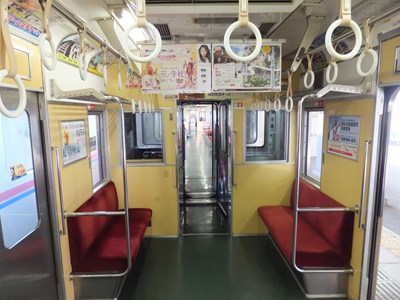 車内は3500形までと同様の暖色系のカラースキームが採用され、化粧板はクリーム、座席モケットはワインレッドのものが採用されている。
