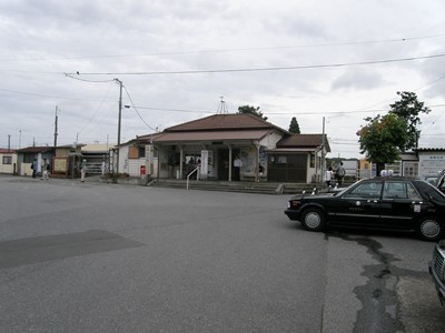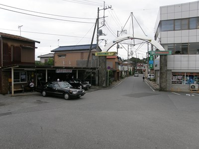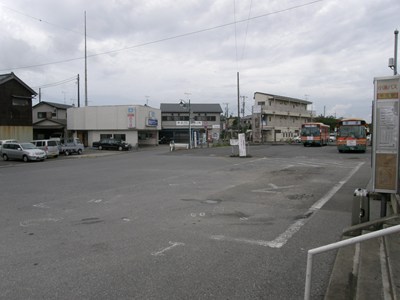 駅前通りは商店街になっていて、駅前にはバスやタクシーの駐車場があります。