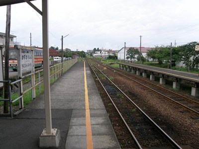 島式・単式混合2面3線の線路配置で、単式ホームの裏側には貨物側線の跡があります。
