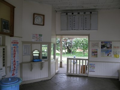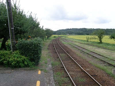 国鉄型配線といわれる2面3線の線路配置で、現在は列車の交換が行われないため一部のポイントが撤去され、駅舎に隣接しているホームだけが使われています。「関東の駅百選」に選ばれているため、ロケ地などとしてもよく使われます。